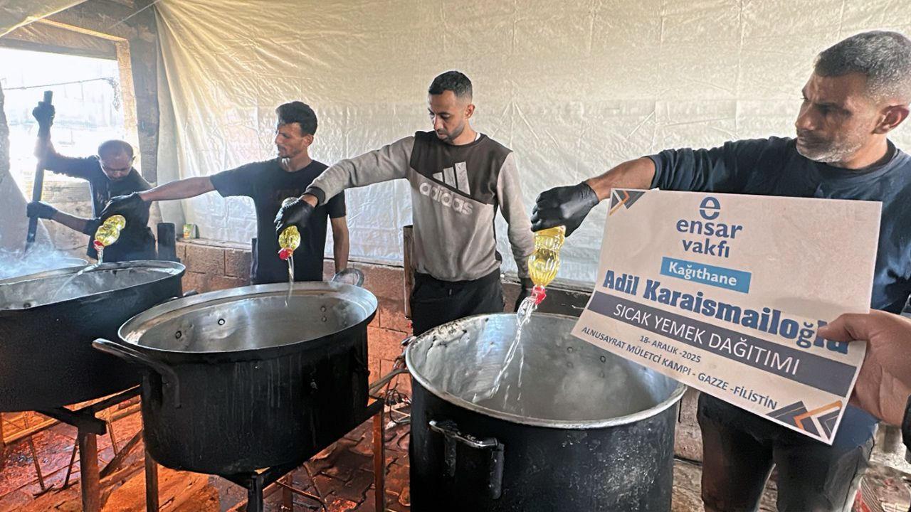 Ensar Vakfı Kağıthane Şubesi, Gazze’de derinleşen insani krize karşı Nusayrat Mülteci Kampı’nda sıcak yemek ve gıda yardımlarını artırarak bölge halkına umut olmaya devam ediyor.